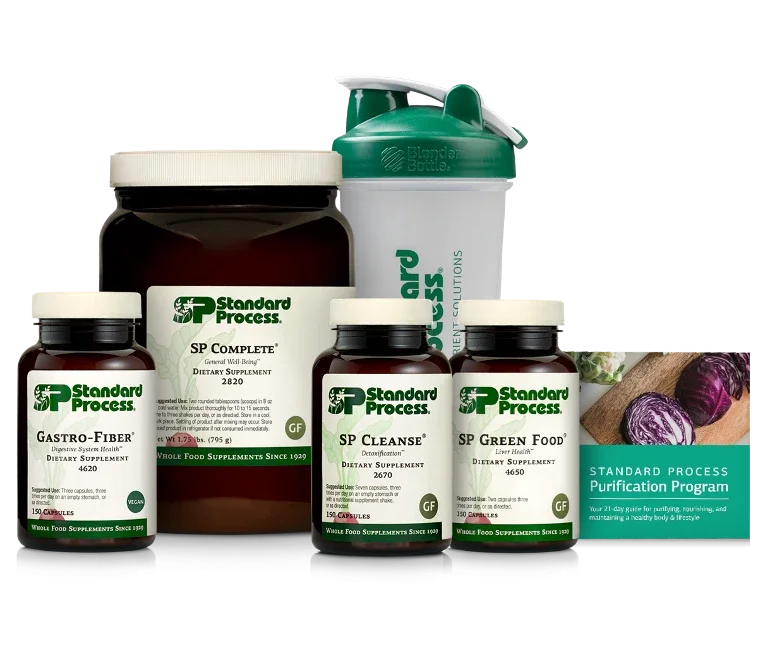 While enjoying a very clean, whole foods diet, you’ll be supplementing with Standard Process purification protocol. This includes a daily whole-foods protein powder to support the body’s normal toxin-elimination function as well as supplements (in the form of capsules) that promote healthy kidney, liver, gall bladder, and overall digestive functions.